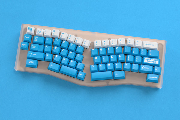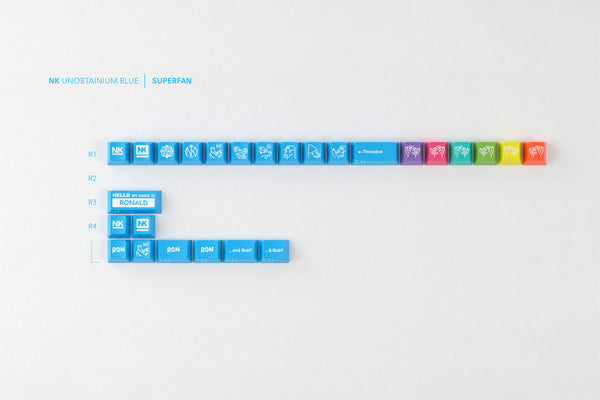 Description Whispered of only in the brightest corners of the skynet, it's true name long forgotten to the march of time... A keycap set so... blue that to gaze upon it brings a joy so buoyant as to cast shadows on all products prior. Crafted the official color of NovelKeys (PMS 2995C), it's already a sight to behold, but when paired with the Superfan novelty pack it becomes an elevated tribute to a company who's mission has always been to never take itself too seriously.