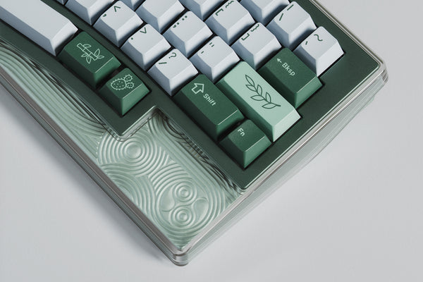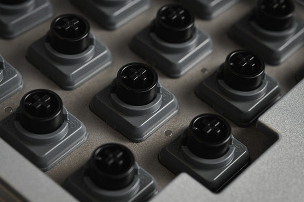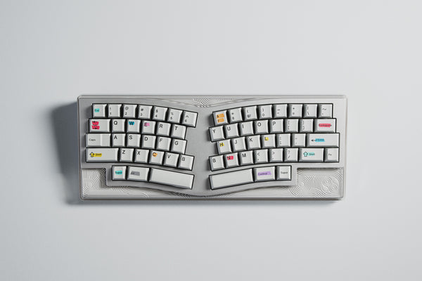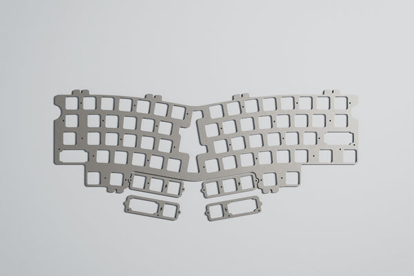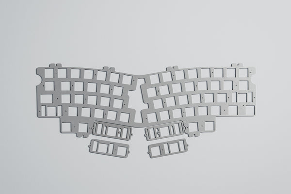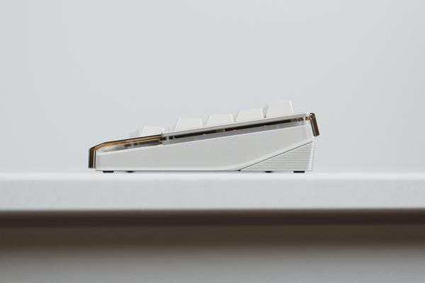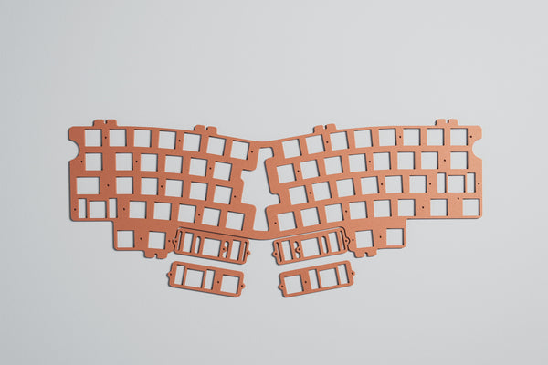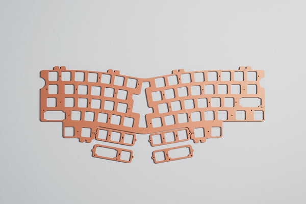 Components & Materials - Accent Border: Magnetically attached Aluminum or Copper - Top Housing: Injection-molded Polycarbonate - Plate: Aluminum (MX) or Stainless Steel (DynaCap) - Plate Islands: Separated spacebar plate islands to mix and match layouts. Two 2u/1u islands and two 3u islands included with each kit. - Bottom Housing: Aluminum - Bottom Weight: Aluminum, Stainless Steel, or Copper - Silicone Border Gasket: Custom-molded, dampens vibration & anchors assembly - Dual-purpose silicone gasket socks: cushioned bottom mount or isolated gasket mount - PCB: Hybrid hot-swap PCB (MX + EC support) - DB Connector: Pogo pin + silicone grommet (collaboration with Omnitype) - USB Daughterboard