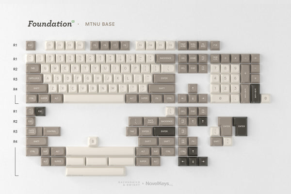 GMK MTNU Foundation Specifications - Made in Germany by GMK electronic design GmbH - MTNU profile (1-1-2-3-4-4) - Compatible with MX style switches - 1.5mm thick double-shot PBT plastic (the core of each spacebar is ABS to mitigate warp, but the entire outer shell remains PBT for the desired feel and texture) - Designed by rayhhdailo & swishy Regional Vendors US - NovelKeys UK - Prototypist KR - SwagKeys SEA - iLumKB CN - KBDFans Disclaimers Kindly note that the images are of 3D renders and are for illustration purposes only. The final colors may differ slightly.