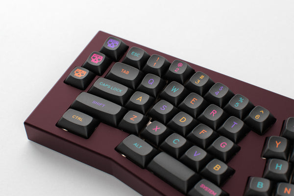 - 1.5mm thick double-shot PBT plastic (the core of each spacebar is ABS to mitigate warp, but the entire outer shell remains PBT for the desired feel and texture)