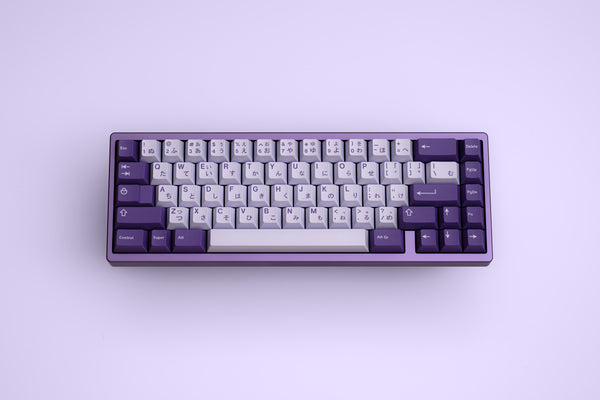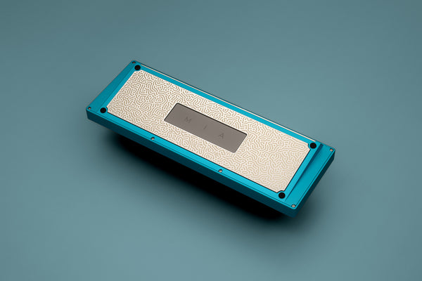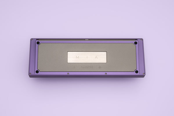 Specifications - Manufactured by Dadesin in China - Material: Aluminium case, Stainless Steel toblerone, backplate and center insert - Colors: Lilac and Cyan - Layout: 65% - Typing angle: 8° - Width: 316mm - Depth: 112mm - Height (without bumpons): 16.5mm (front), 32mm (back) - Weight: Approximately 1740g, depending on configuration, before stabilizers, switches and keycaps are added - Plate material: Aluminium (anodized black) or Polycarbonate (frosted) - Plate thickness: 1.5mm - Plate mounting style: 7-point top mount - Interface: USB-C - Electronics: WT65-G GRAPHITE (Solder) / WT65-H1 GRAPHITE (Hotswap) PCB designed by wilba.tech, QMK compatible and fully programmable with VIA configurator, USB-C daughterboard is custom and not interchangeable with the universal daughterboard - Designed by TGR with input from Oblotzky and pattern designs by biip